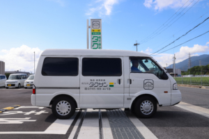 高速道路の料金所を降り少し走ると浜丁通りと呼ばれる通りへさしかかる。かつては花街として栄えたエリアだったそうだが、現在は開いている商店もまばらで、ところどころに微かな面影を残すのみ。そんな街並みを車でゆっくりと進んでみると、リネンのワンピースをまとい頭にはヘアバンドをつけた女性が一人、建物の前を竹箒で掃除している姿が見えた。